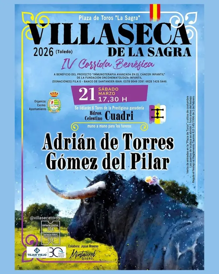 Tras la baja de Juan de Castilla y según anunciamos en la tarde de ayer, su sustituto será el diestro de Linares @adrian_de_torres , quedando el cartel definitivo con Adrián de Torres y @gomezdelpilar mano a mano con toros de Hdros de D. Celestino Cuadri en la IV Corrida Benéfica a favor de la inves